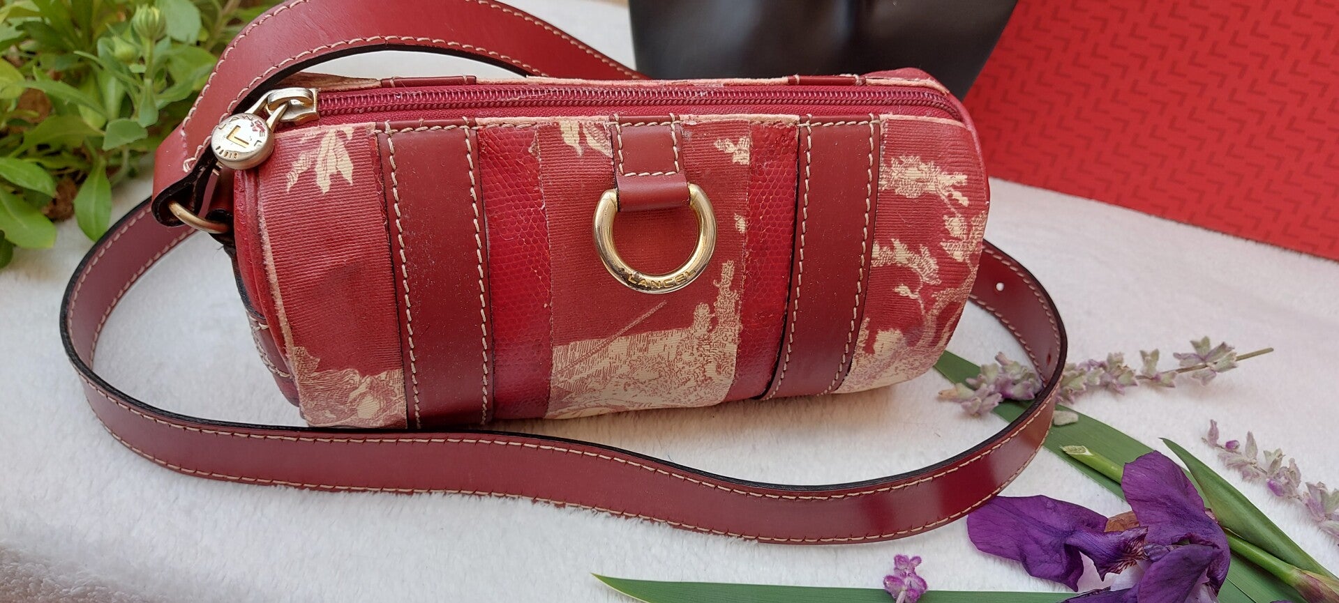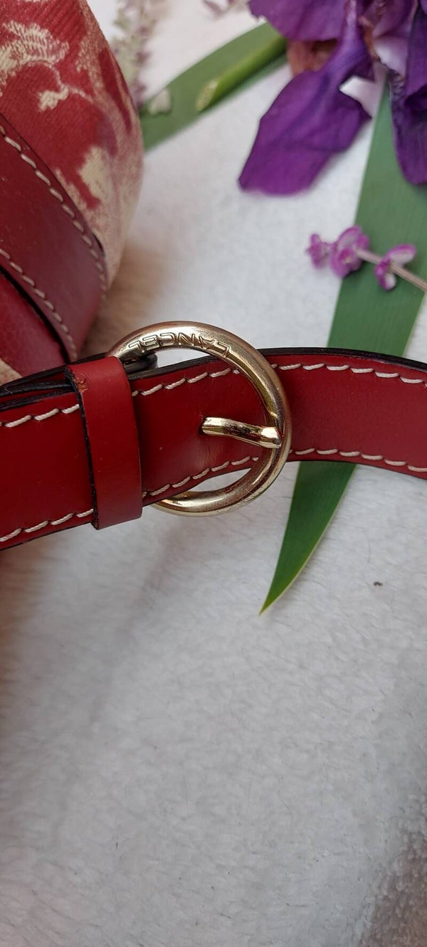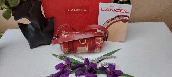 Lancel model Elsa cuir sellier rouge forme mini bowling long rond vintage années 1980/2000