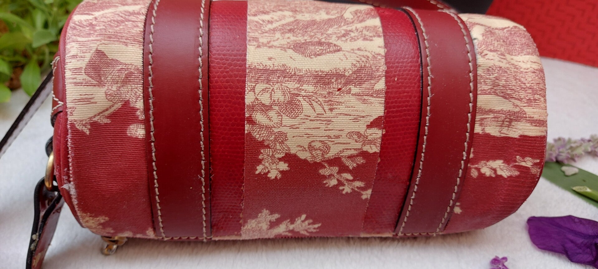 Lancel model Elsa cuir sellier rouge forme mini bowling long rond vintage années 1980/2000€