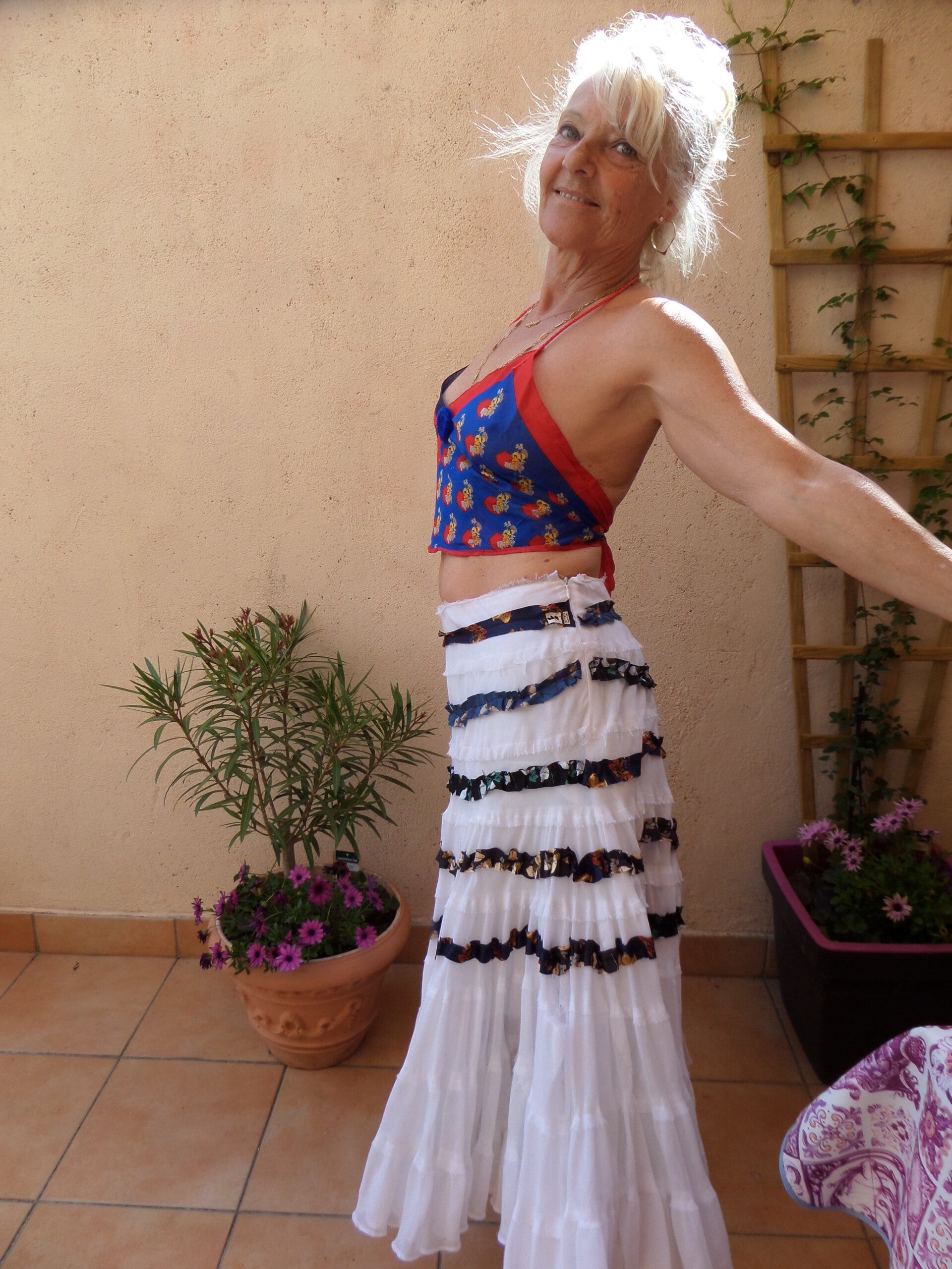 ROUGE ET BLEU Fait avec 2 carré gavroches foulard en coton Marque : ICHTHYS MADE IN MONACO