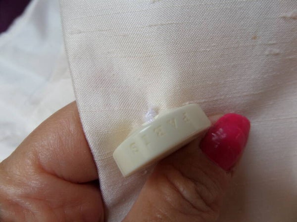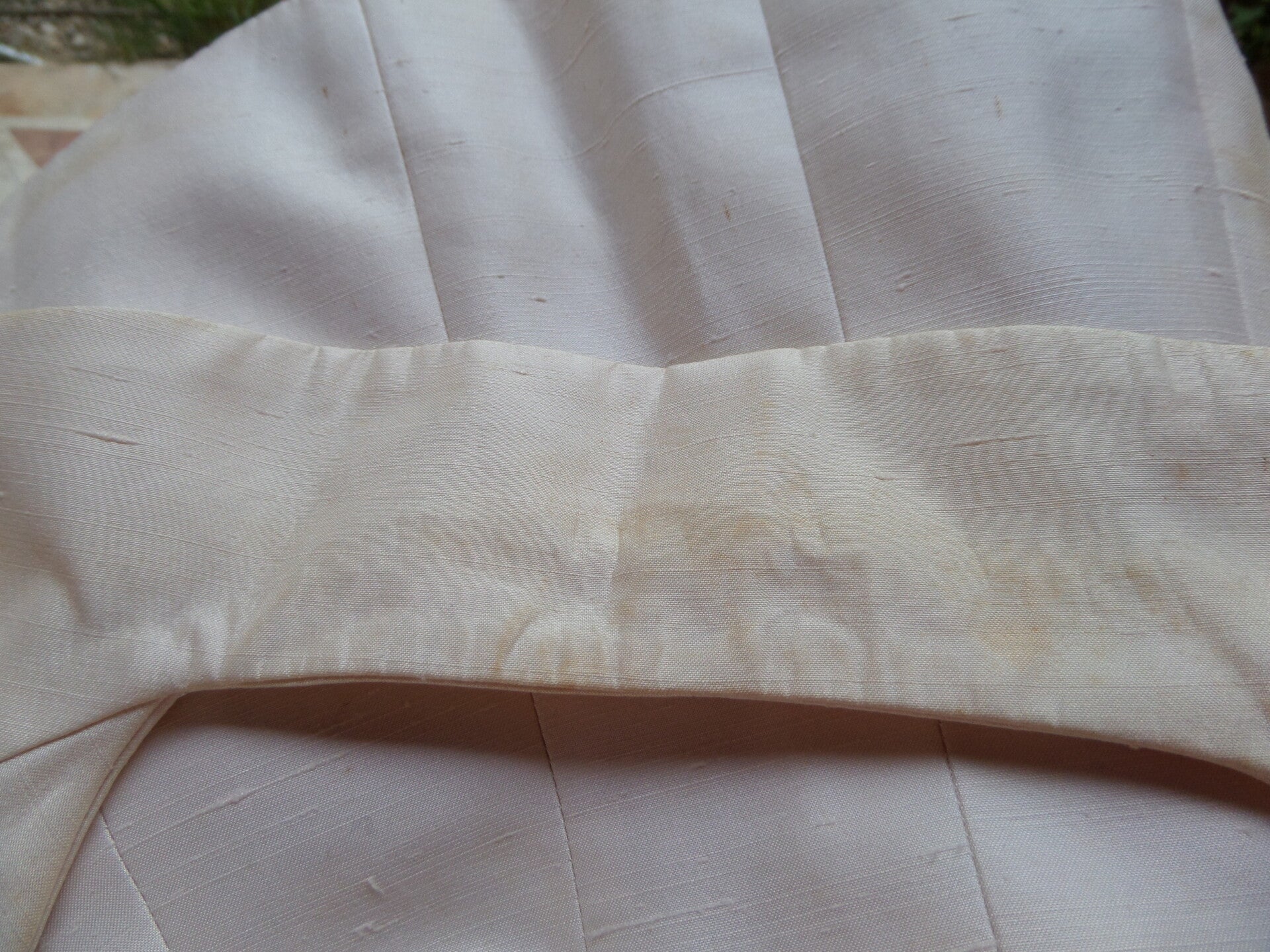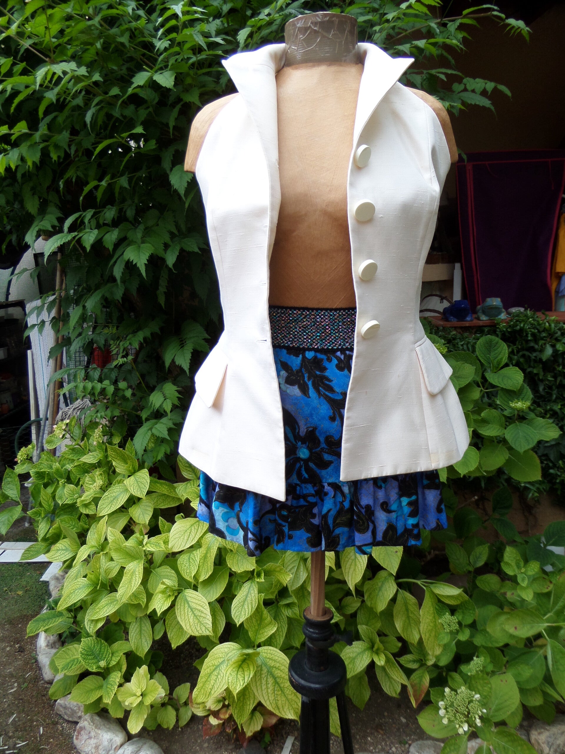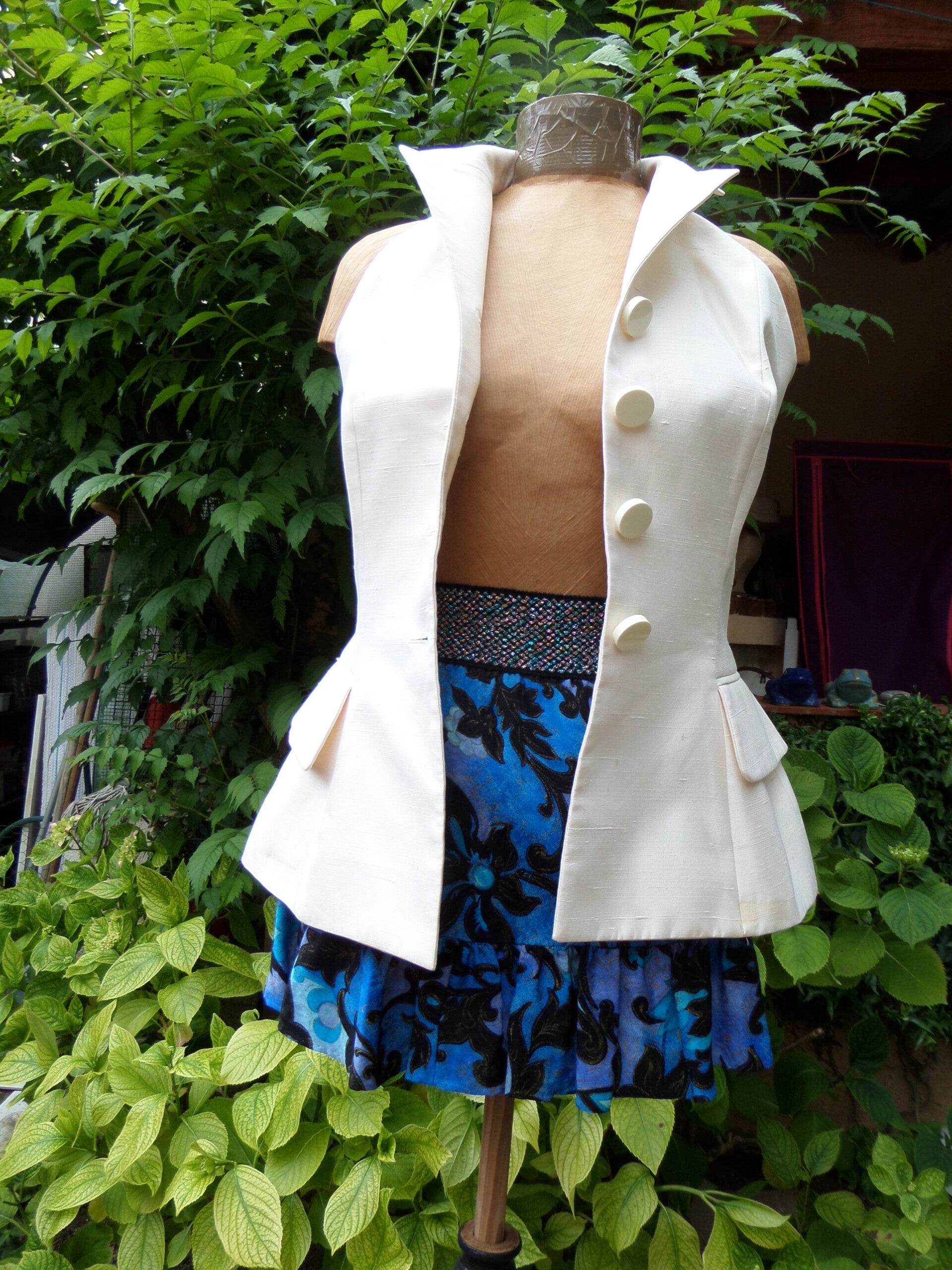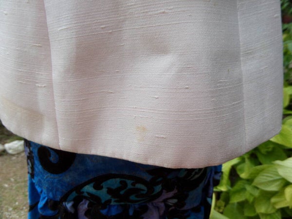 Matière = bourrette de soie écru, doublé