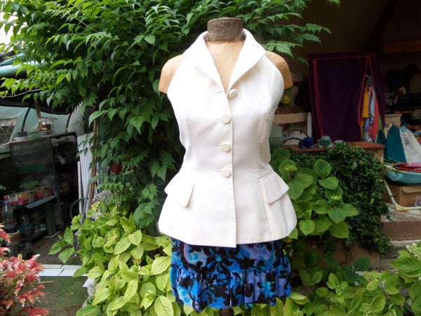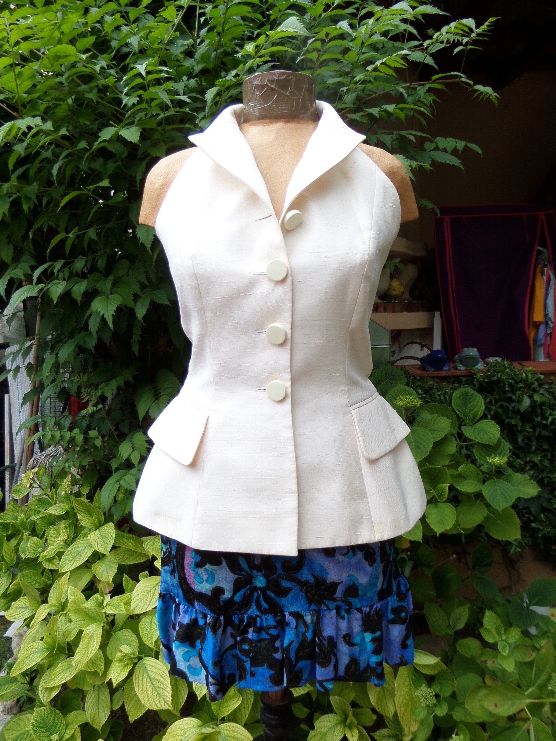 DIOR Christian , boutique , Paris , haute couture , France , vintage , bourrette soie , veste top smoking , bustier , dos nu , mariage, cérémonie, cocktail,festival de CANNES, grand prix F1 MONACO collector exclusivité must have iconique intemporelle vint