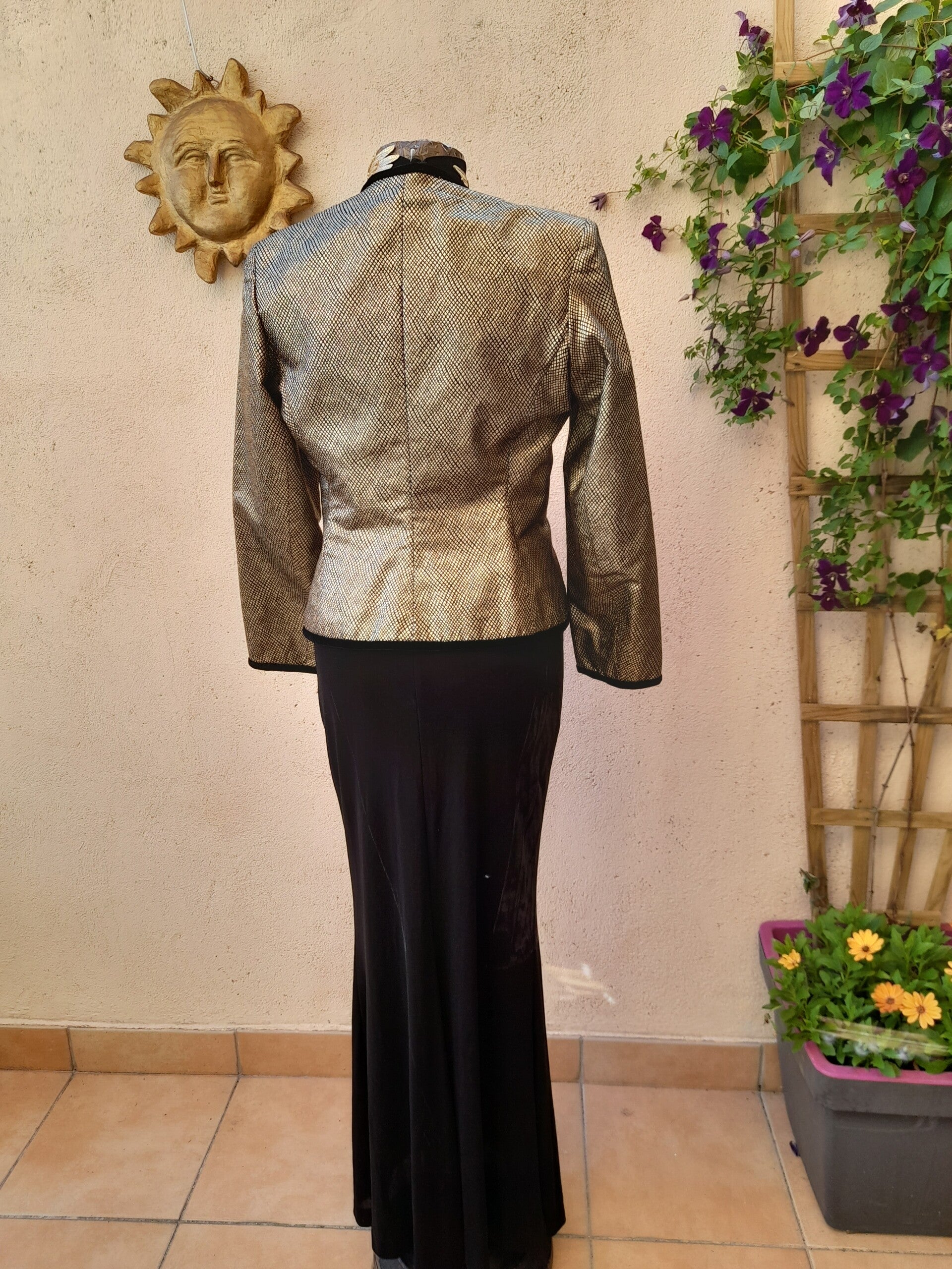 VESTE " Chanel " dorée or et noir couturière fait main styliste créatrice doublure soie haute couture vintage luxe chic pièce unique exclusif