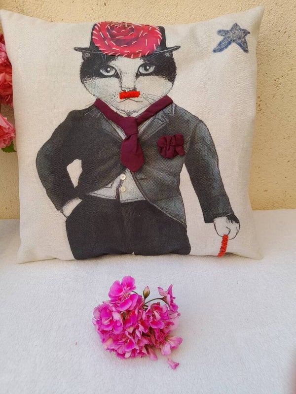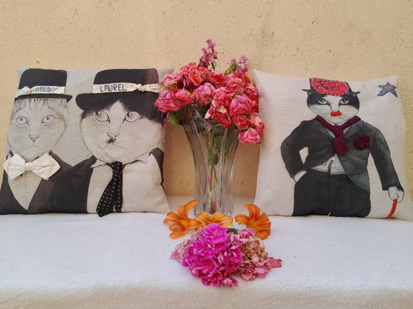 Lot de é housses de coussin lin brodées main