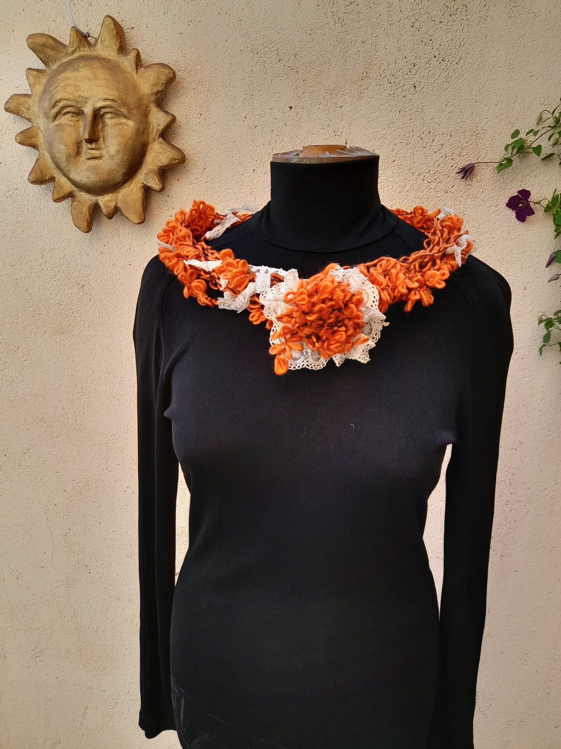COLLIER boho bobo hippy laine tweed dentelles anciennes ReFashion
